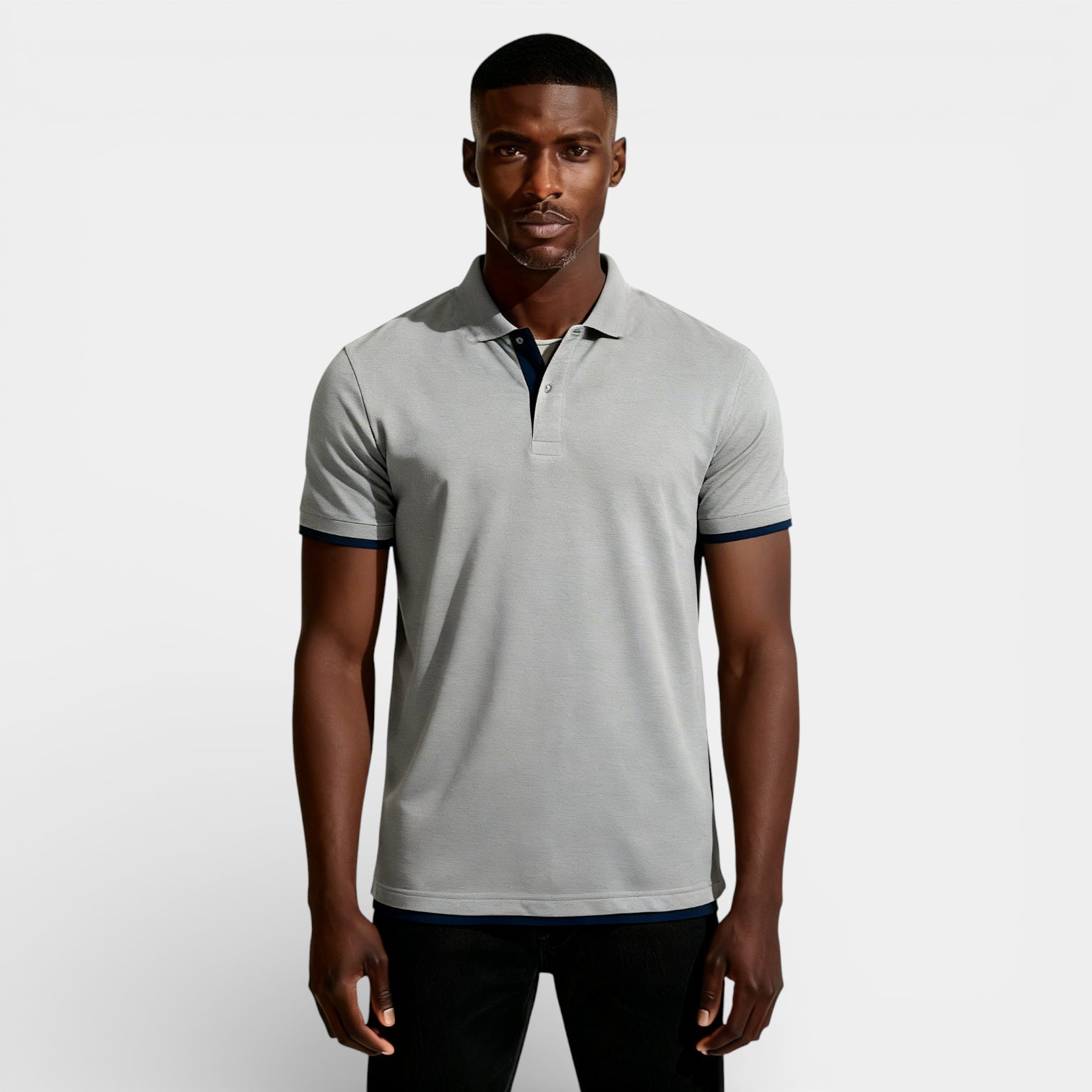 This men’s short-sleeve polo shirt presents a clean, refined look defined by a solid-color surface and a structured collar. The short placket opening and contrast inner collar detail add subtle visual interest, while the short sleeves and straight hem keep the silhouette composed. The overall cut reads as regular fit based on the straight, balanced lines shown in the images. Pair it with tailored trousers or clean denim to build a sharp, modern outfit.