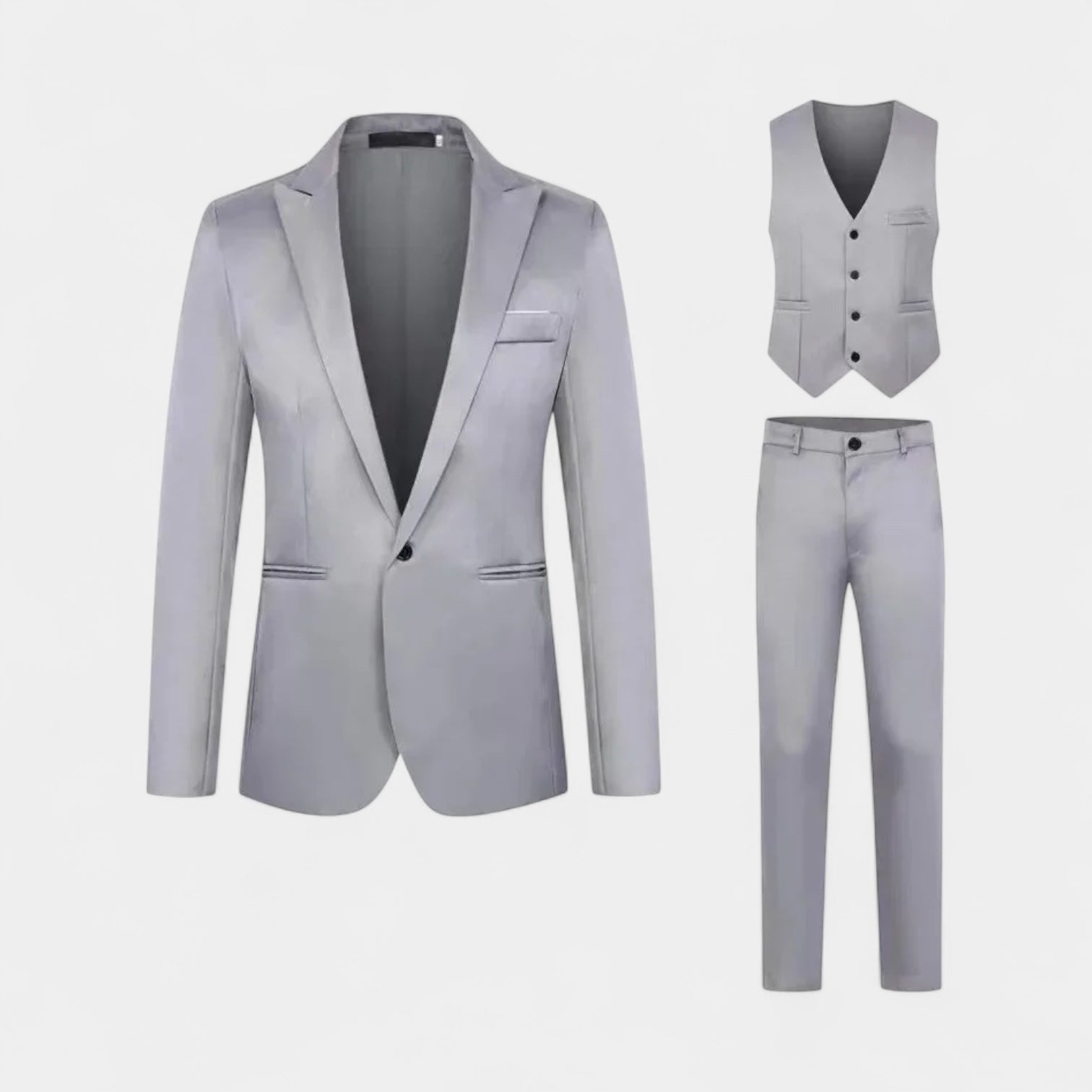 Step up your formal style with this men’s 3-piece suit set, featuring a tailored blazer, matching vest, and trousers for a complete polished look. Designed with a modern slim fit, this suit combines comfort and sophistication, perfect for weddings, business events, or special occasions. The premium woven fabric offers a smooth texture and slight stretch for all-day ease, while the vest adds a refined touch to your ensemble.