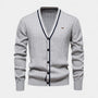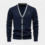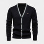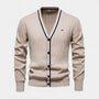 This men’s ribbed button-up cardigan combines timeless style with everyday comfort. Made from a soft cotton blend, it features a vertical ribbed texture for a structured look and a comfortable stretch fit. The V-neckline and button-down front make it easy to layer over shirts or T-shirts, while the striped trim adds a touch of contrast for a modern finish. Ideal for casual outings or semi-formal settings, this cardigan offers both warmth and versatility.