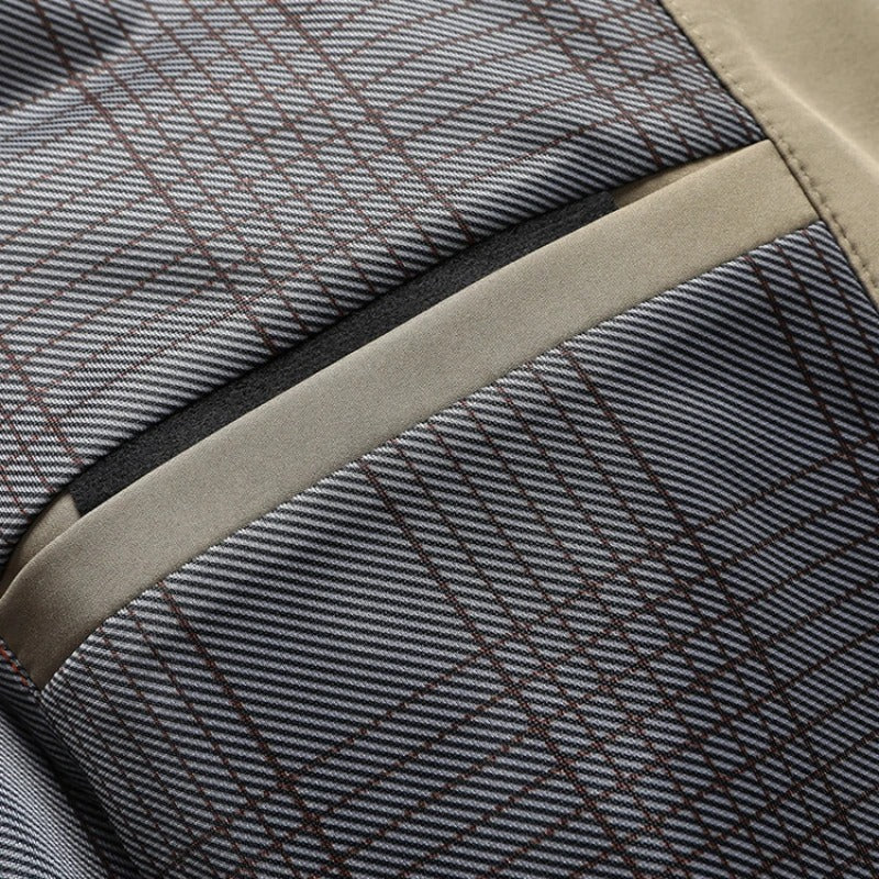 Elevate your mid-season style with the Vintares Men's Bomber Jacket, a perfect blend of functionality and elegance. The outer fabric is windproof and water-repellent, while the checkered inner lining made of soft polyester provides a sophisticated contrast and extra warmth on chilly mornings. The smooth two-way zipper and concealed side pockets create a clean, minimalist silhouette, and the ribbed cuffs at the sleeves and hem offer a perfect fit that keeps the wind out. Pair it with jeans or chinos for a relaxed yet polished look.