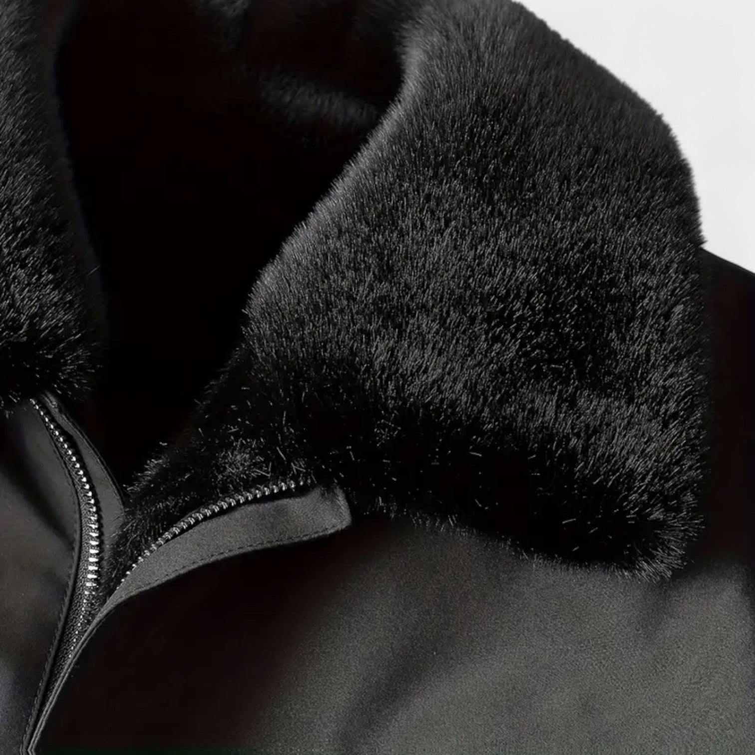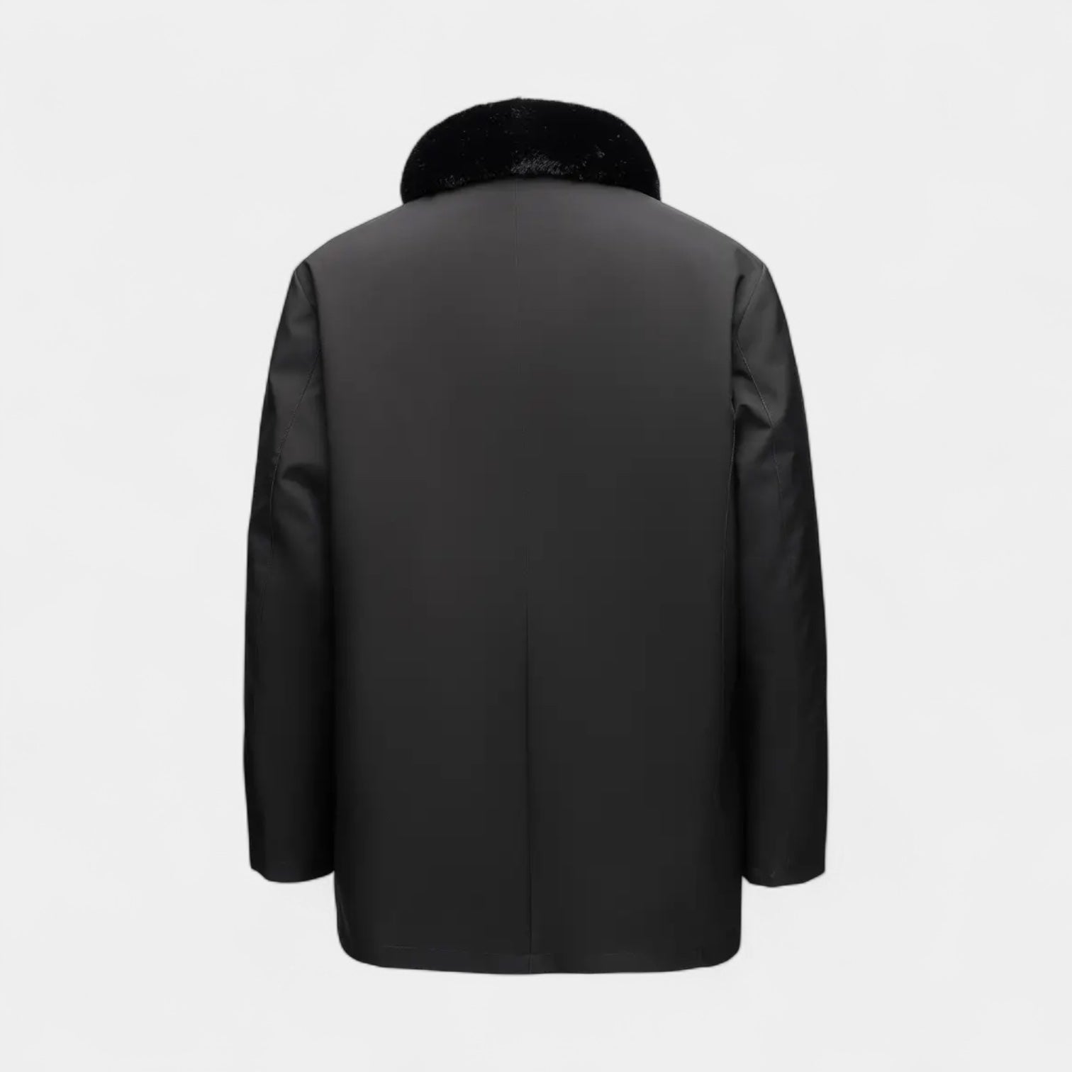 Stay warm and sophisticated this winter with this men’s faux fur collar coat. Designed for both comfort and elegance, it features a smooth exterior finish with a soft faux fur inner lining and collar for maximum warmth. The minimalist silhouette, concealed zipper closure, and tailored cut give this coat a refined, modern look suitable for formal or casual winter wear.