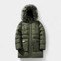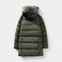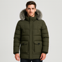Stay warm and stylish in this men’s long down parka, designed for superior insulation and modern appeal. The jacket features a thick quilted design filled with high-quality down alternative for warmth without bulk. The hood comes with a detachable faux fur trim for extra protection against cold winds and a refined winter look. Functional pockets provide convenience, while the long length ensures full coverage during harsh weather.
