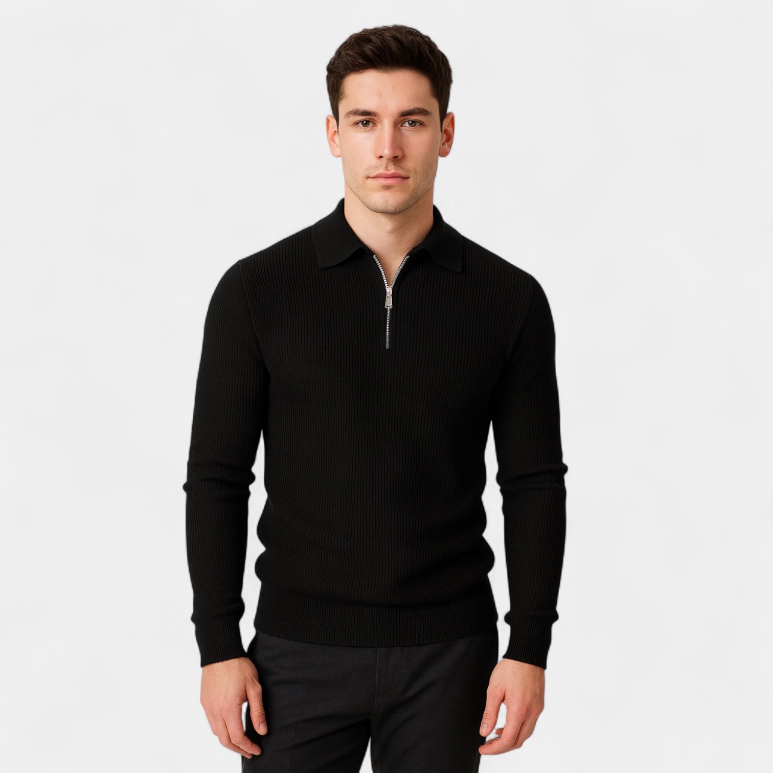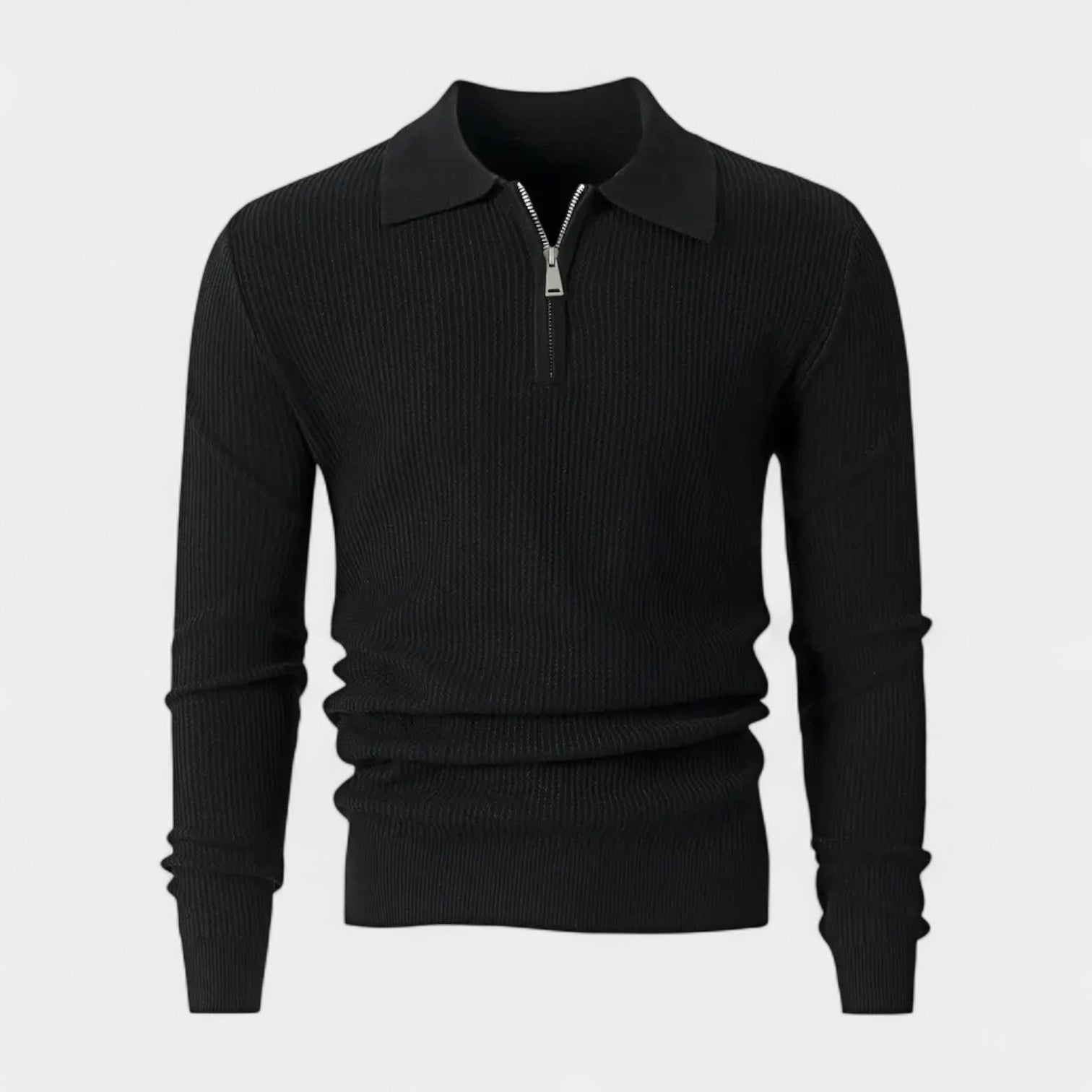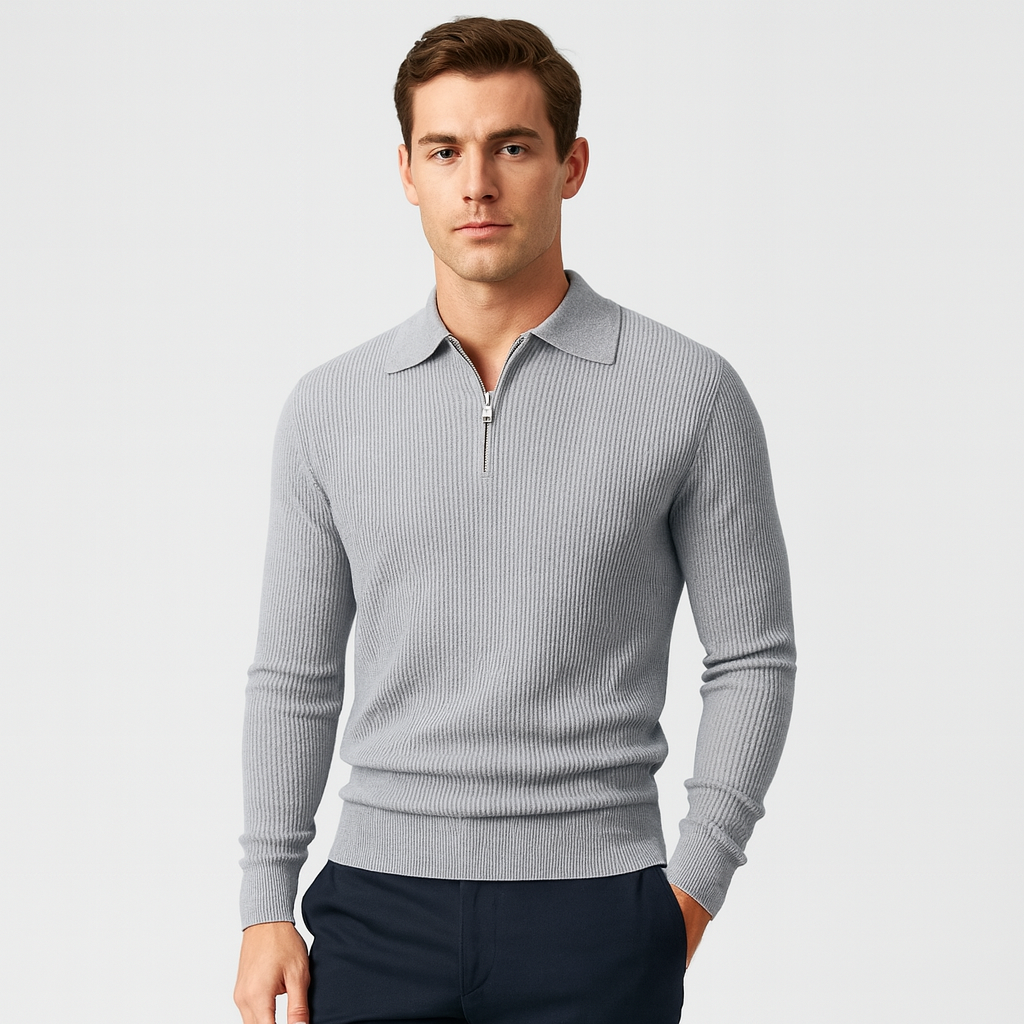 Vintares | Long Sleeve Ribbed Polo Shirt for Men
