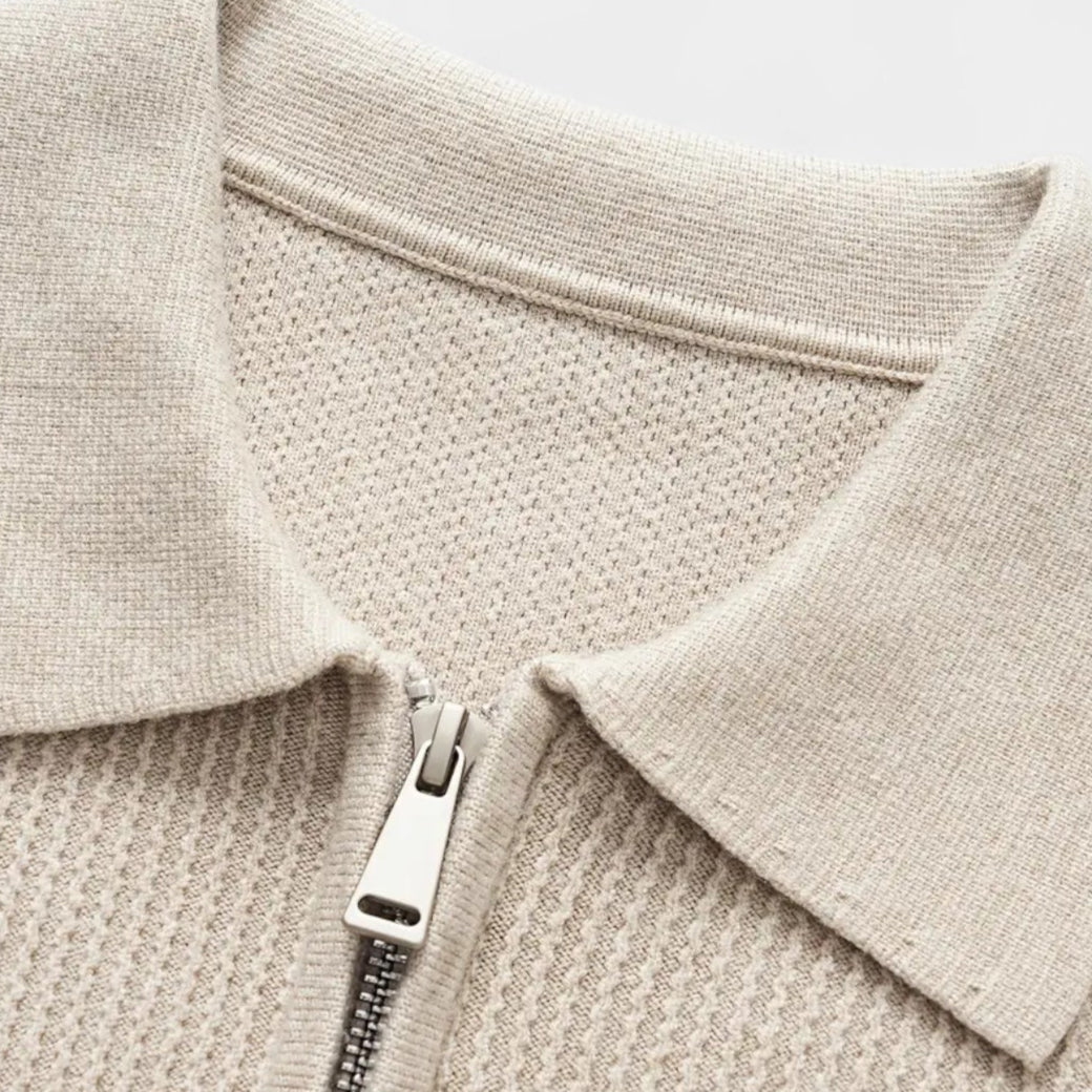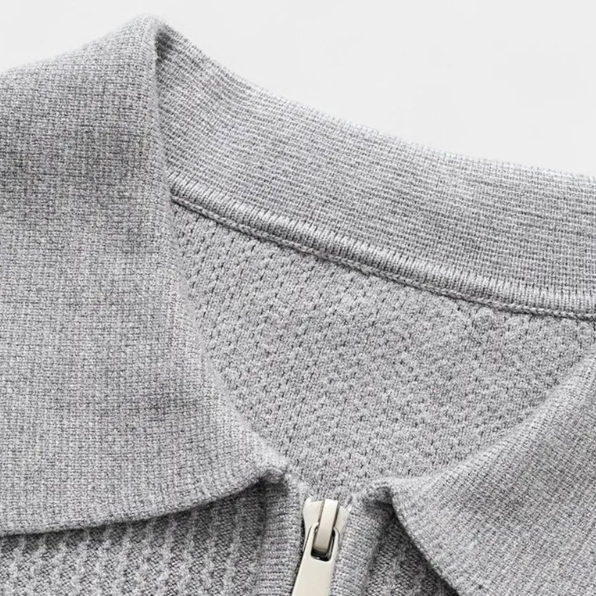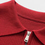 This men’s half-zip knit polo sweater offers a blend of casual and refined style. Made from soft, breathable knit fabric, it provides comfort for daily wear and an easy fit for layering. The ribbed texture and zip-up collar give it a versatile look that pairs well with jeans or trousers.