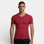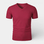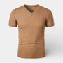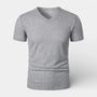 Ribbed V-Neck Knit T-Shirt Short Sleeve for Men