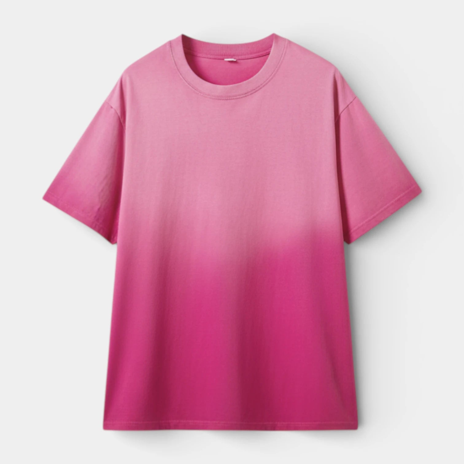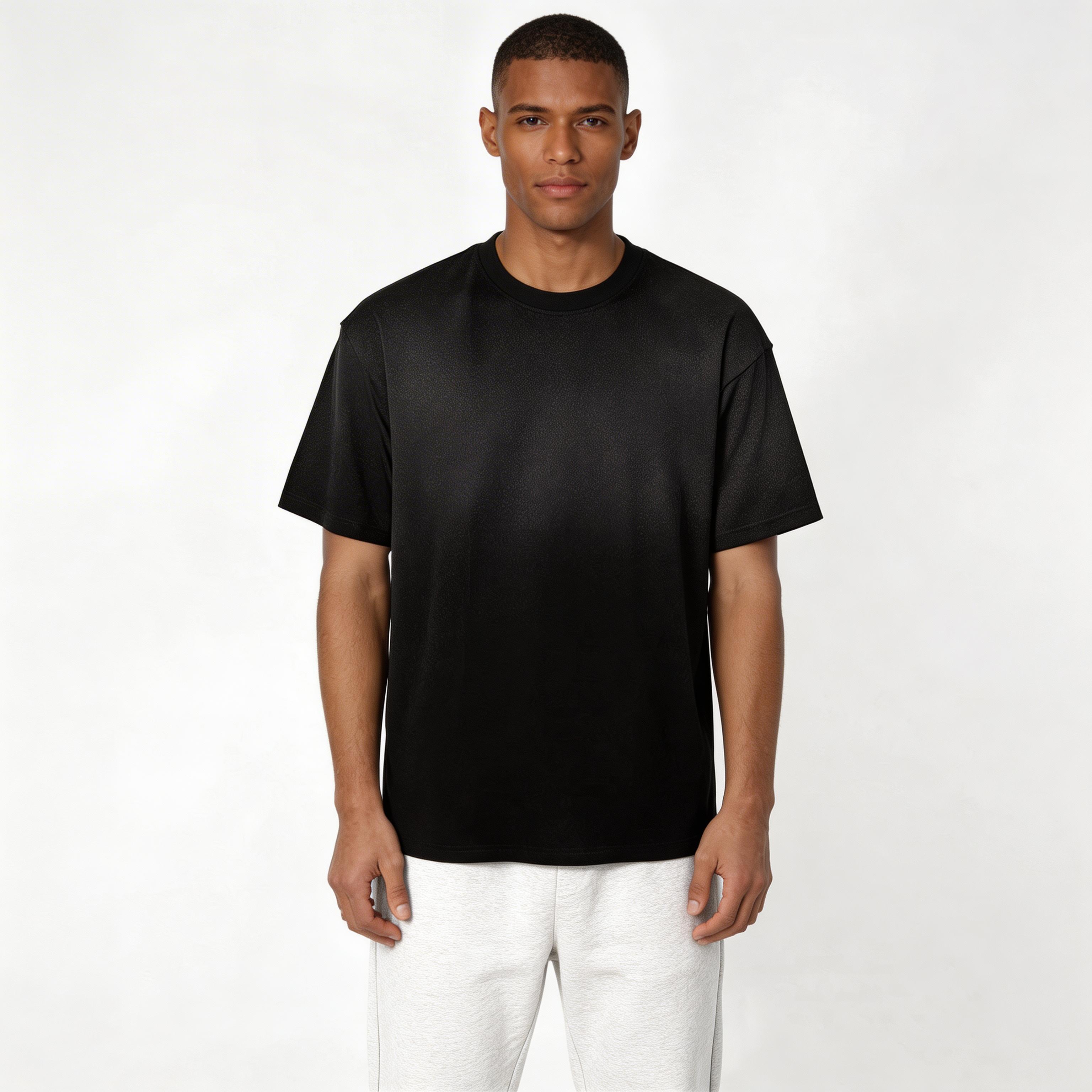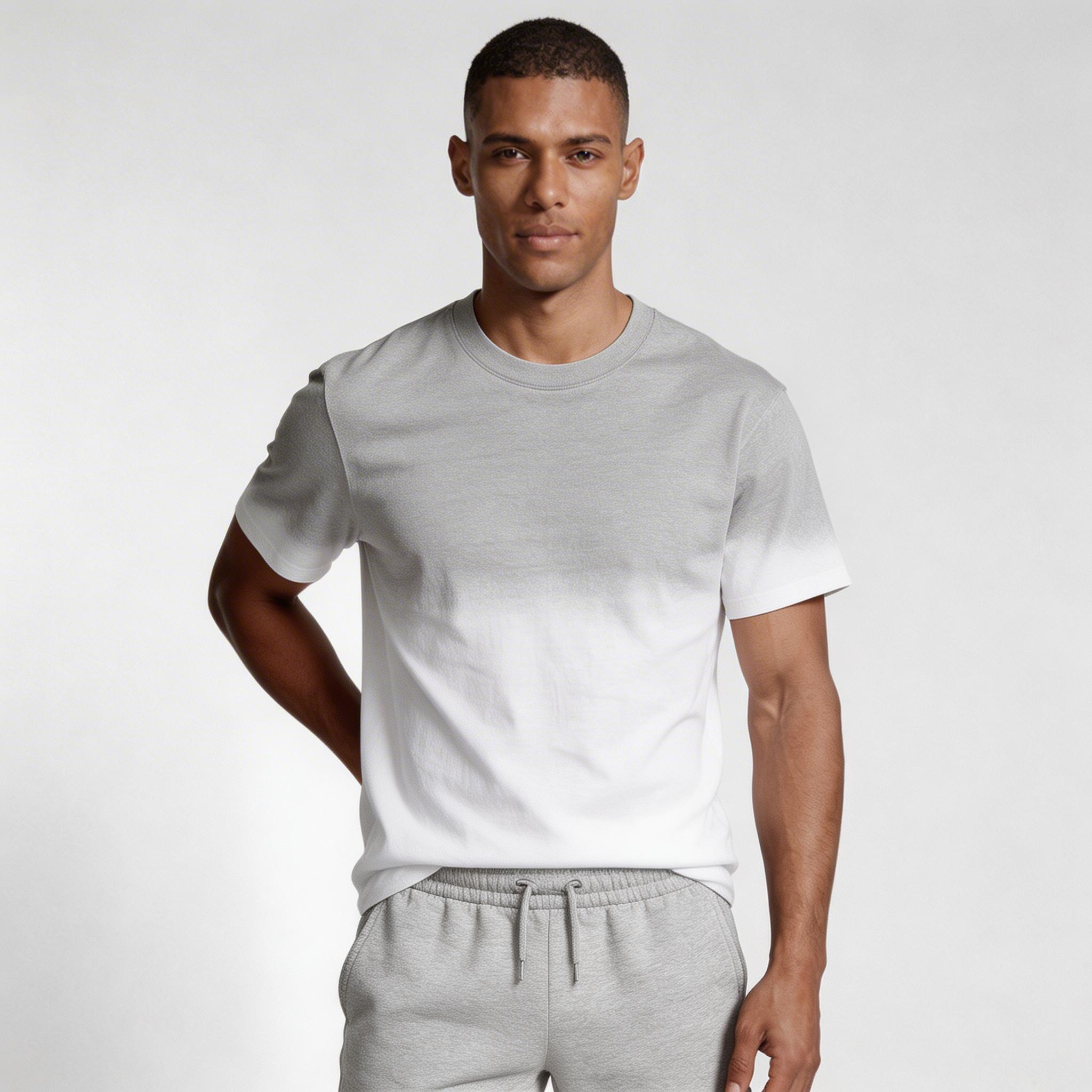 This men’s short-sleeve T-shirt features a clean ombre gradient design that shifts gradually across the fabric for a refined visual finish. The shirt includes a classic crew neckline, short sleeves, and a smooth front panel that highlights the color transition. Subtle shoulder seams and a relaxed silhouette create a balanced outline with a modern casual look. Pair it with denim, casual trousers, or shorts for a polished off-duty outfit.