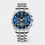 The Vintares Numberless Chronograph Dive Watch pairs minimalist style with rugged performance. Its 41 mm stainless steel case, topped by Hardlex crystal, frames a clean, numberless dial with luminous hands and three subdials for precise stopwatch timing. Rated to 3 bar for swimming, it secures with a 21 mm stainless steel bracelet and push-button hidden clasp for a sleek, versatile look.