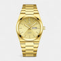 Crafted with precision and presence, the Vintares Quartz Watch blends classic detailing with modern sophistication. Its 38 mm stainless steel round case, 11 mm thick, is protected by a Hardlex crystal for enduring clarity. A dial marked with Roman numerals is enhanced by luminous hands and features including auto date, moon phase, perpetual calendar, week display. The stainless steel strap with a push button hidden clasp ensures a secure fit, while 3 bar water resistance and quartz-powered accuracy make this luxury timepiece both elegant and dependable.