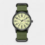 Lightweight and durable, the Vintares Quartz Sport Watch is designed for active style and everyday performance. Its 41 mm round alloy case, just 9.5 mm thick, is topped with a Hardlex crystal for strength and clarity. The dial features Arabic numeral markers with luminous hands, complemented by auto date, complete calendar, week display, and diver-inspired detailing. A long 28 cm nylon strap with buckle clasp ensures a secure and comfortable fit. Powered by quartz precision and rated to 3 bar water resistance, this watch is built for sport and casual wear.