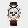Blending technical features with everyday appeal, the Vintares Quartz Watch offers bold design and versatile function. Its 46 mm stainless steel round case, 15 mm thick, is fitted with a Hardlex crystal for durability. A numberless dial with luminous needle hands is enhanced by stopwatch, chronograph, moon phase, and complete calendar functions, ensuring both precision and practicality. A leather strap with a buckle clasp secures the fit, while 3 bar water resistance and quartz reliability make it an ideal companion for fashion and casual settings.