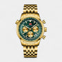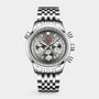 Dynamic and functional, the Vintares Quartz Sport Watch is built for performance with a bold edge. Its round alloy case, 13.5 mm thick, is fitted with a Hardlex crystal for durability. A numberless dial with luminous needle hands integrates auto date, chronograph, complete calendar, and week display functions for everyday utility. The stainless steel strap with a push button hidden clasp secures the fit, while quartz-powered accuracy and 3 bar water resistance ensure this watch keeps pace with an active lifestyle.