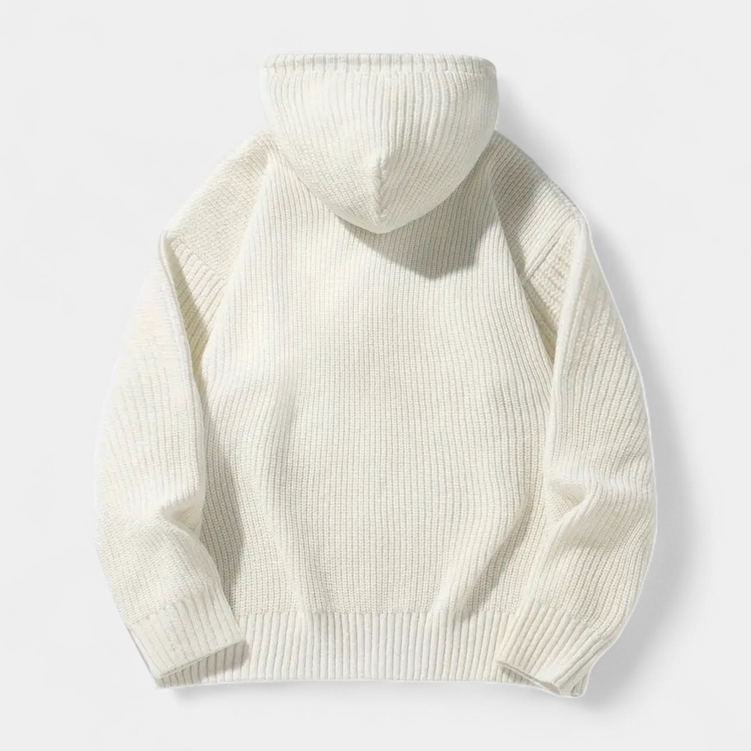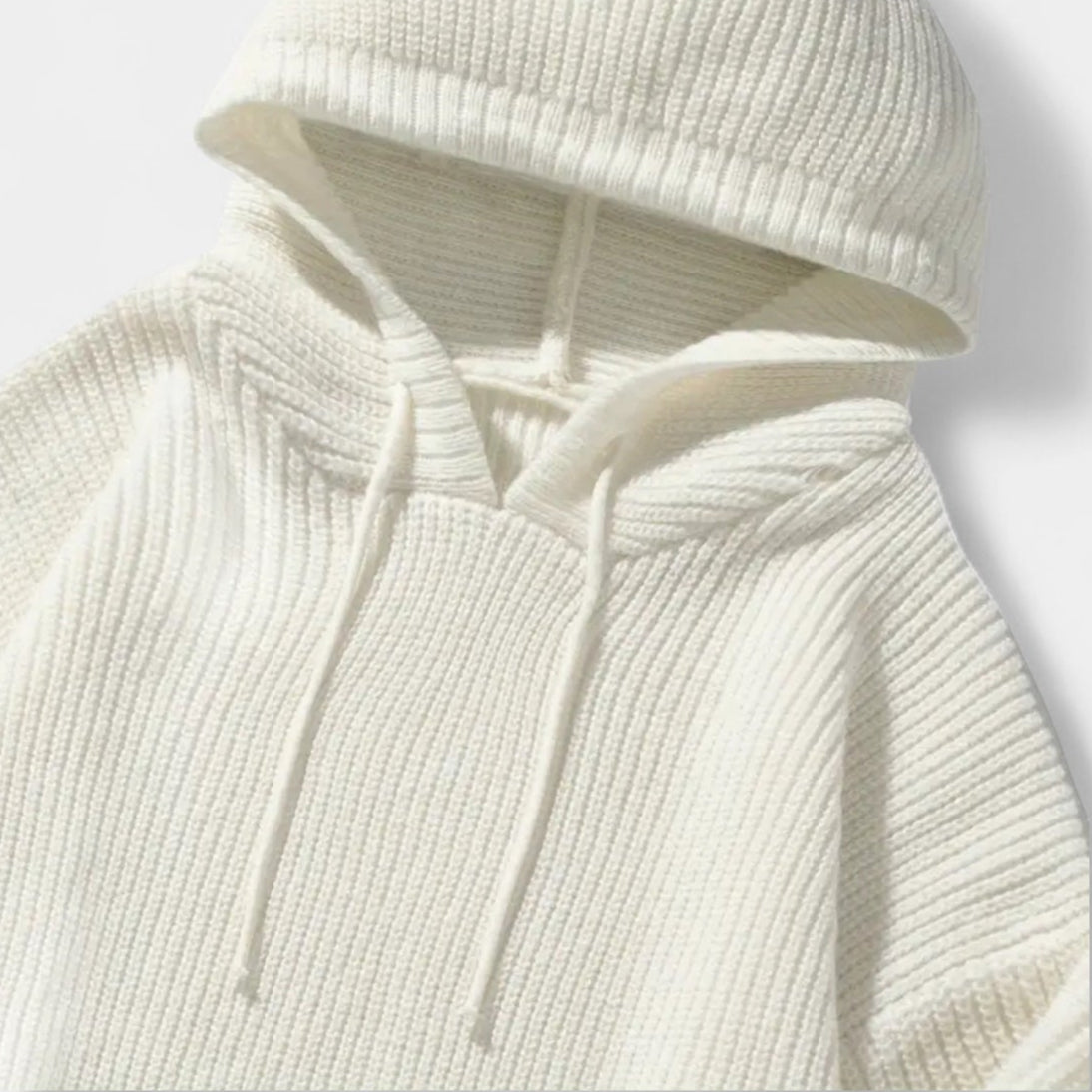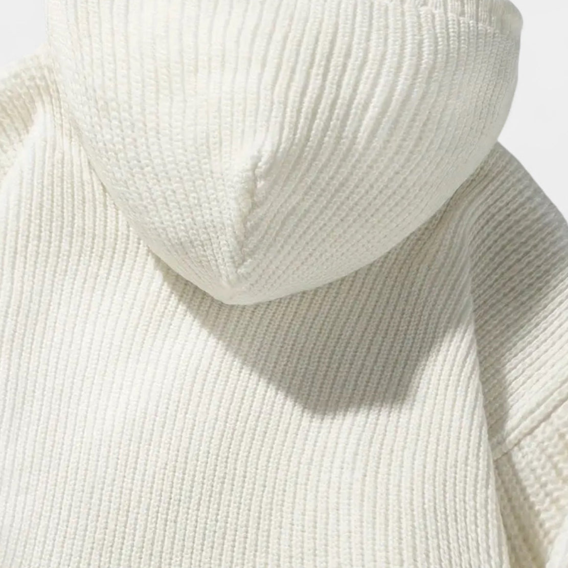 - Chunky ribbed knit texture: Adds dimension and structure to the classic hoodie form.