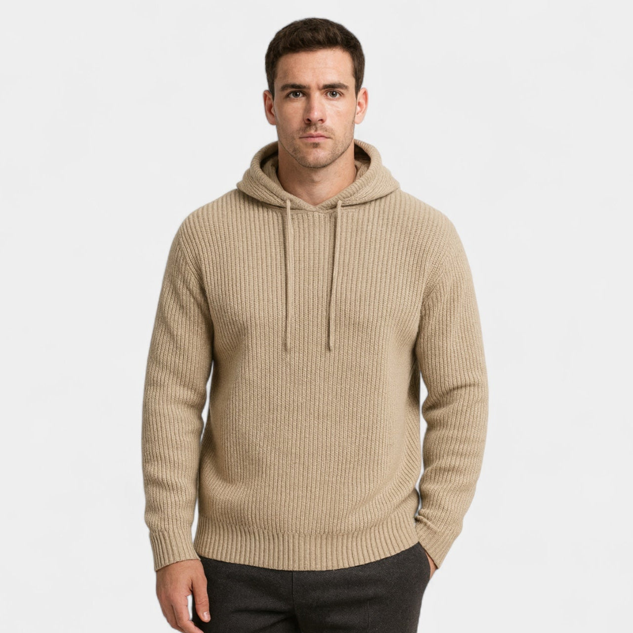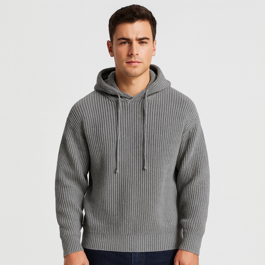 The Men’s Ribbed Knit Hoodie blends casual ease with refined craftsmanship. Designed for warmth and texture, this elevated staple features a relaxed silhouette in a soft, heavyweight knit — perfect for cool weather layering or effortless off-duty styling.