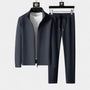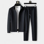 This men’s tracksuit set includes a zip-up jacket and matching jogger pants, designed for comfort and style. Made from a smooth polyester blend with a subtle textured finish, it offers lightweight flexibility for casual wear or light workouts. The jacket features a full front zipper, side pockets, and a stand collar, while the pants have an elastic waistband with an adjustable drawstring for a secure fit. The soft interior lining ensures all-day comfort, making it suitable for everyday use or travel.